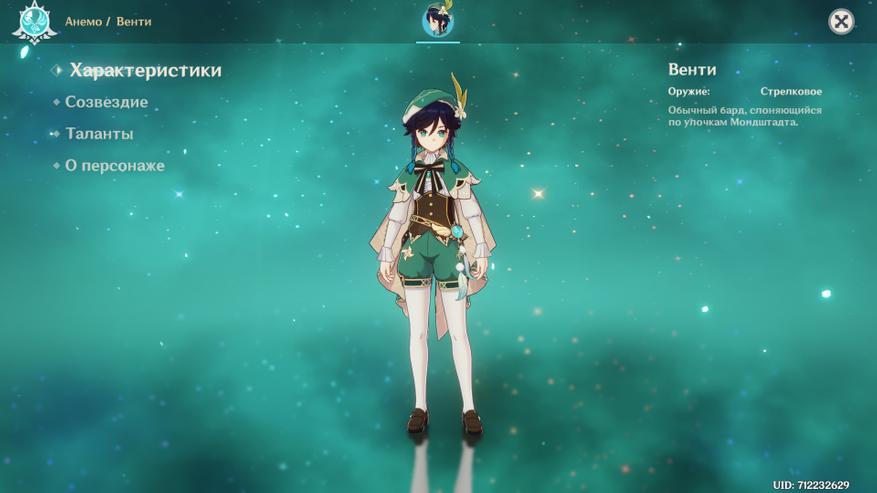 Венти — безответственный бог ветра, заполучить которого мечтают все поклонники игры. Специализируется на дальних атаках и урону по площади. Игровые механики привязаны к взаимодействию с персонажами стихии огня или льда. Прокачка достаточно проста, так как большинство необходимых герою ресурсов находится рядом с Мондштадтом. Отличный выбор для зачистки подземелий и сбора артефактов.