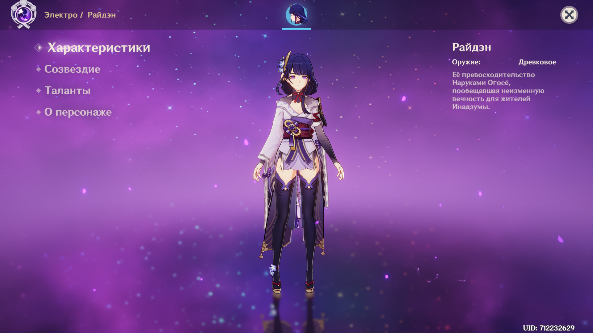 Сёгун Райдэн — самая желаемая героиня игры. Отличается холодным характером. Предпочитает орудовать на поле смертоносным копьём — заряженным элементом молнии. Может выступать в роли персонажа поддержки урона или как основной атакующий персонаж. Чрезвычайно требовательна к снаряжению и составу команды. Сложна в прокачке на начальном этапе игры.