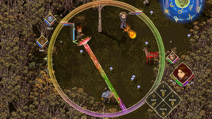 Боевая система сочетает тактическое планирование с созданием заклинаний в реальном времени через использование магических проводников, свитков и зелий. В Foundlings реализована система четырех темпераментов (кровь, флегма, желтая и черная желчь), которую нужно балансировать для эмоциональной стабильности персонажей. Заклинания можно усиливать, перенастраивая их в соответствии с движением планет.