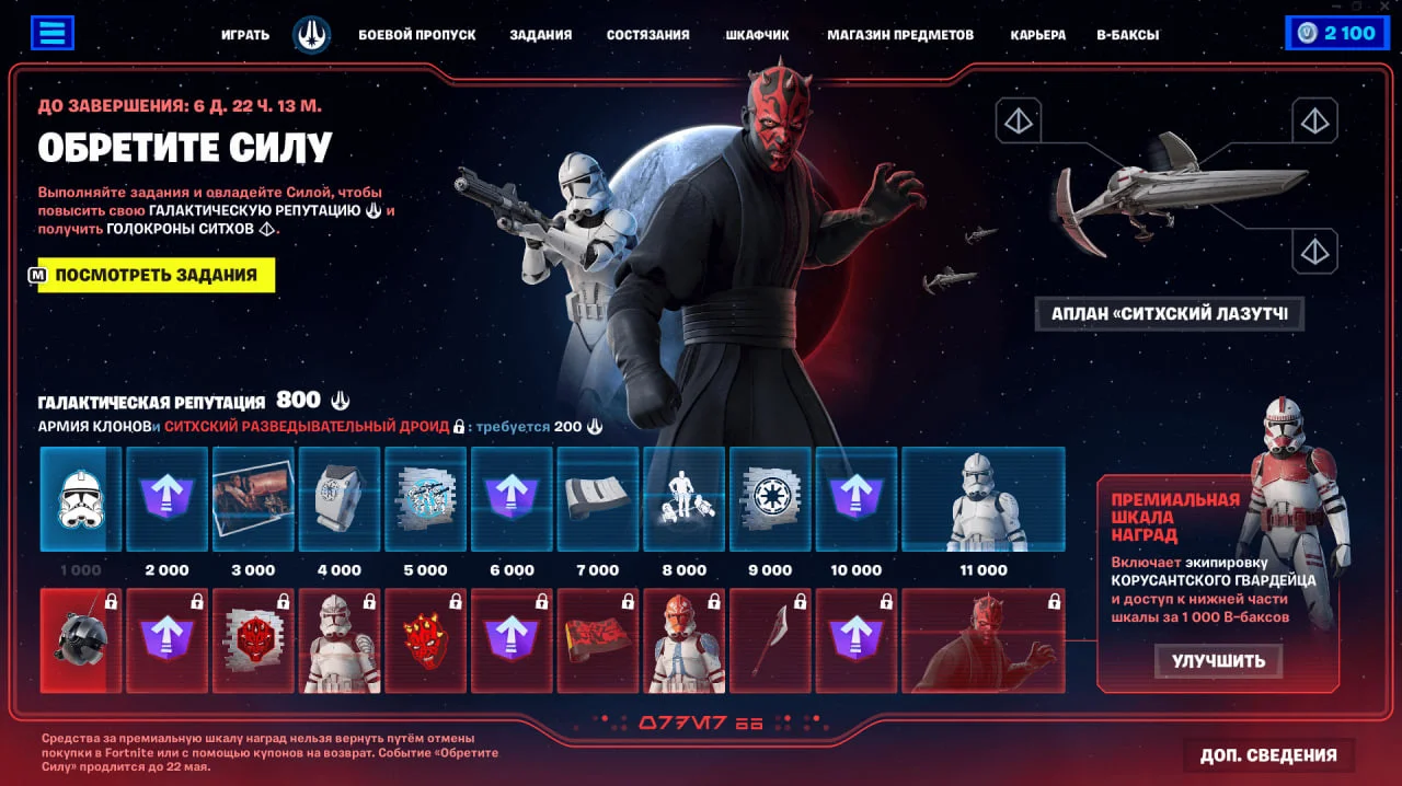 Для продвижения по шкале можно выполнять специальные задания задания или просто купить прогресс. Цена стандартная- 150 «В-баксов» за раздел.