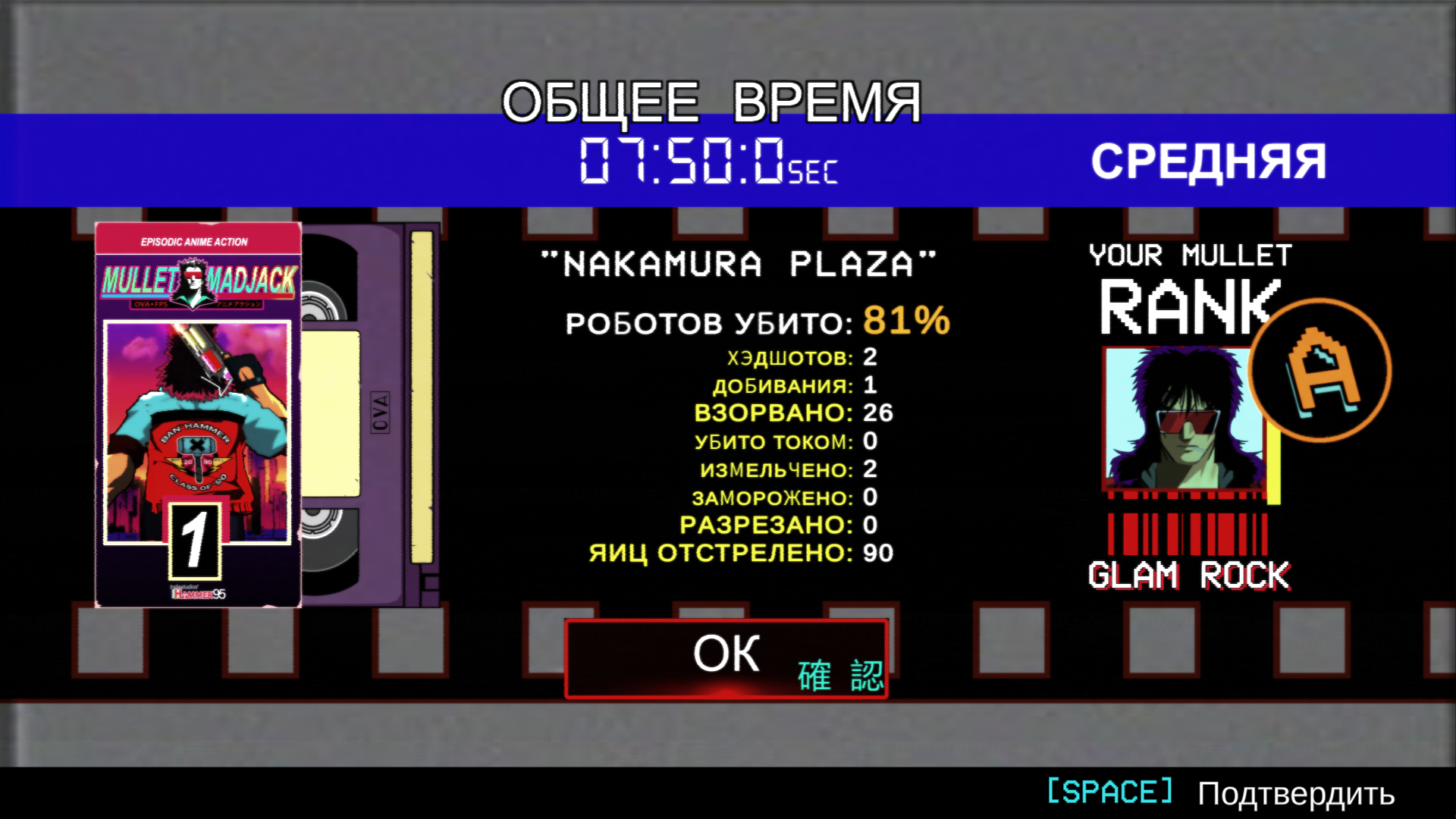 Как в порно, он не нужен, но имеется. История в Mullet Mad Jack — это квинтэссенция всего, что мы любим в боевиках 80-х. Бесстрашный герой сражается против орды роботов, чтобы спасти прекрасную девушку от ужасной участи. Роботы угрожают её девственности. Герой должен остановить их что бы… восстановить справедливость. Это простая, но захватывающая история, полная клише, юмора и попыток сломать четвертую стену, что делает её идеальной для такого рода игры.