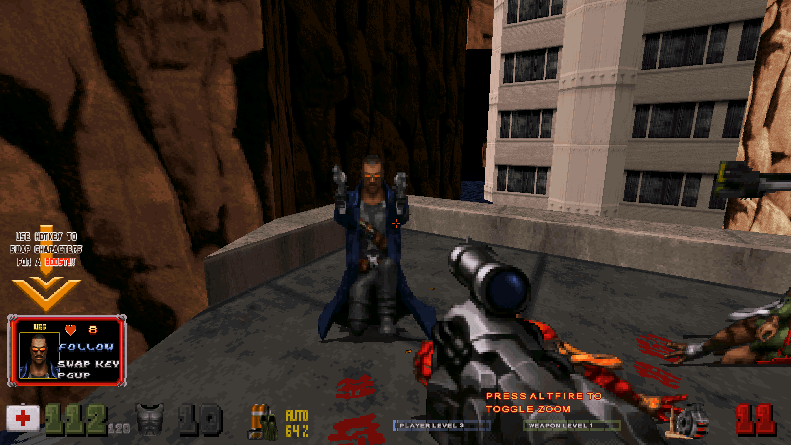 А сейчас расскажу об одной из нескольких игр, которая использует улучшенный движок Build — EDuke32, и которая делает оригинальную игру более динамичной и интереснее, добавляя в нее новые игровые механики. Имя этой игры — Alien Armageddon.