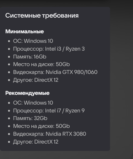 - Видеокарта: Nvidia RTX 3080;