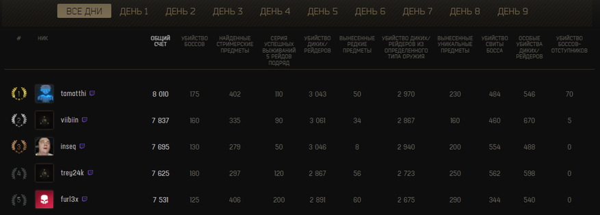 Battlestate Games провела турнир для стримеров по Escape from Tarkov, на котором участники должны заниматься всеми возможными PvE-активностями: сбор предметов и бои с рядовыми ботами и боссами. Победители турнира получат приз в виде игрового предмета, который будет назван в его честь. Некоторые из них намеренно отказались участвовать, заявив, что правила набора турнирных очков выглядят абсолютно бредово. Другие же не захотели участвовать т.к. награда в виде именного предмета не выглядит чем-то стоящим.