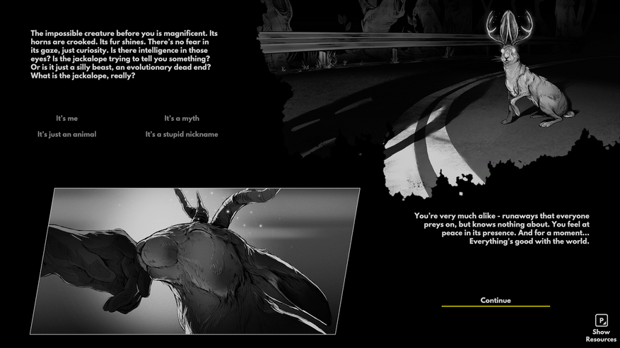 Игра представляет собой простенькую аркадную игрушку, стилизованную под чёрно-белые комиксы. Сюжет разделён на четыре акта, в каждом из которых есть одна и та же цель — догнать и победить лучшего гонщика в мире. Игрок всегда стартует в городе в западной части США, первая задача — сбежать из города. После успешного побега гонщик получает ёмкое прозвище от комментатора по радио — Interstate Jackalope, что можно вольно перевести как «мифический рогатый заяц, прыгающий по магистралям», но чаще всего сокращается до простого «Джеки».