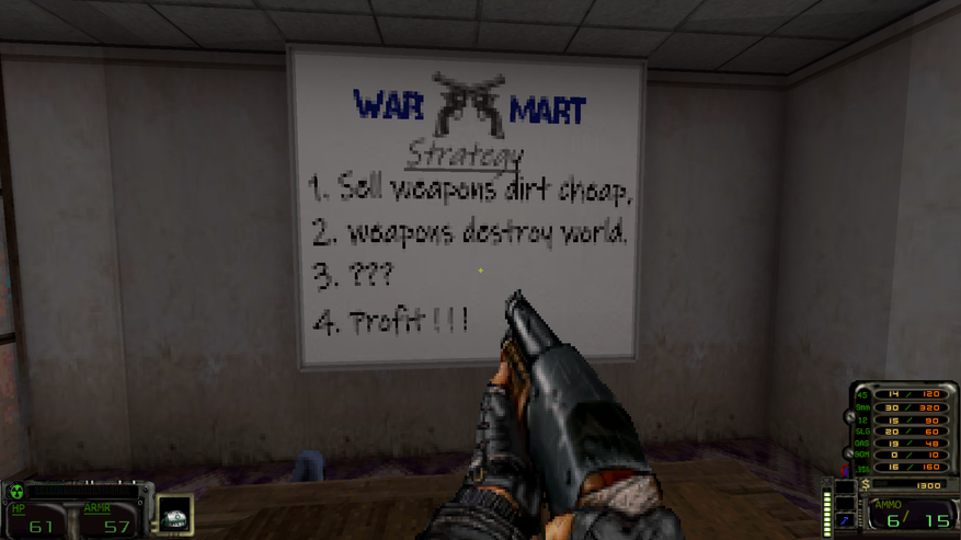 «Шутер старой школы» созданный на движке GZDoom, как будто бы специально для таких игроков как я, которым важно как оно играется, а не как оно выглядит. С атмосферой сожженного мира в игре все так как надо. Прах разрушенной войной Атланты, населенные черти чем разрушенные городские массивы, банды разнообразных рейдеров, зоны радиоактивного загрязнения. И все это обернуто в старую 2.5D графику. Все по классике.