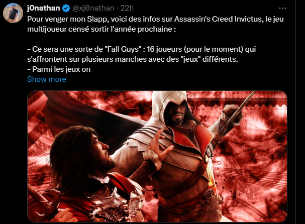 Со слов инсайдера с положительной репутацией касательно утечек по франшизе Assassin's Creed, Invictus будет соревновательной игрой разделенной на раунды, подобно Full Guys, с множеством скинов для персонажа из различных частей франшизы. «Это будет своего рода «Fall Guys» — 16 игроков, которые соревнуются в нескольких раундах в разных мини-играх», — написал j0nathan