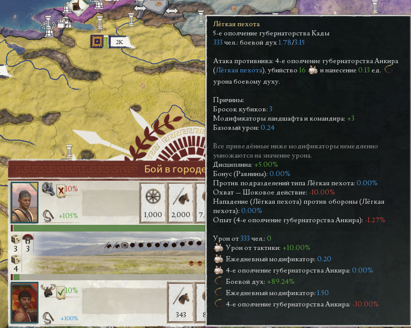 Вот мы и подошли к последнему игро-механическому преимуществу ИР над другими играми не только Параходов, но и вообще гранд-стратегий. Исключая всего лишь серию Total War, где бои проводятся на отдельном экране и которая мало интересуется политикой и культурой, симуляция боёв в Императоре одна из самых продвинутых в жанре гранд-стратегий.