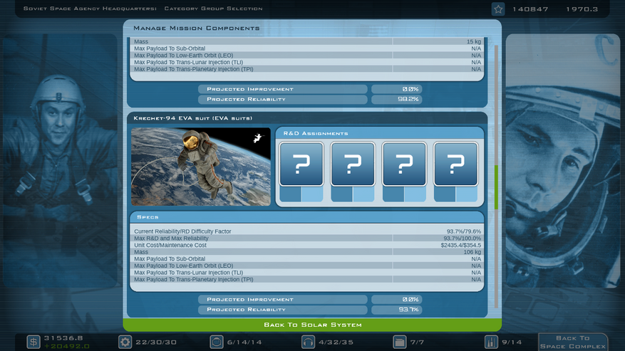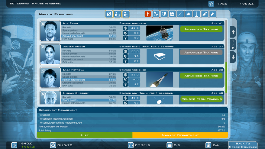 Работа с космонавтами в BASPM по сравнению с игрой-предшественницей изменена не значительно. Их также нужно нанимать, тренировать, назначать на миссии.