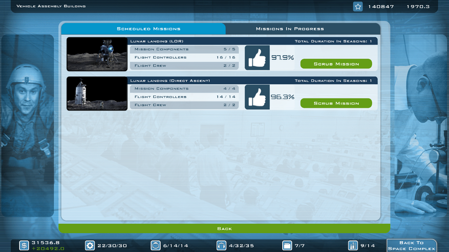 В целом, изменения в игровой механики имеют как свои положительные, так и отрицательные стороны. Из положительных моментов следует отметить возможность исправить техническую неисправность во время полета специалистами ЦУП. Теперь длительные миссии, сопровождаемые грамотными инженерами, имеют больше шансов закончиться успешно. Из негативных моментов — необходимость постоянной ручной прокачки конструкторов и специалистов. Управляя коллективом из нескольких десятков человек, приходится практически каждый ход перераспределять людей между курсами подготовки, космическими программами, запусками. Это немного утомляет своим однообразием.
