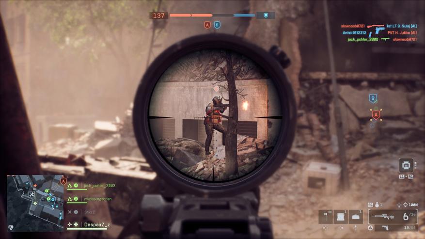 Инженером я играл меньше всех, — и то потому, что случайно класс переключил при возрождении — но базука, которой можно сносить технику или игроков — это фан! Раньше я сказал что снайперка не «шотает»? Вот где истинный снайпер!