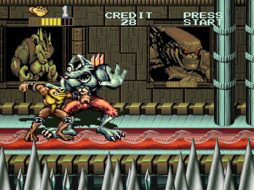 Также Beat'em-Up вытаскивает и то, с каким задором художники подошли к работе над спрайтами жаб. Приятно смотреть на то, как во время битвы трансформируются руки и на ногах вырастаю огромные сапоги или появляются те же рога.