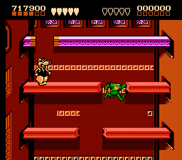 С первой BattleToads меня связывают противоречивые чувства. Её можно долго хвалить за великолепные задумки в дизайне и столько же ругать за излишне завышенную сложность. По факту игра представляет из себя симбиоз сегментов из нескольких жанров: Beat’em Up-а, платформера и чего-то на подобие гонок, сегменты с турбобайками или моноколесом. И хотя игру чаще всего относят к Beat’em Up-у, я бы больше назвал её платформером, так как в нём сосредоточен самый большой кусок игры и лучшие идеи. Сегменты вроде вращающейся башни, когда создаётся эффект ходьбы по кругу, так и вовсе выглядят впечатляющими для своего времени.