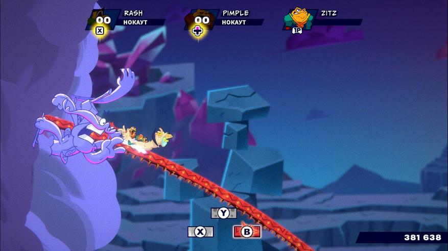 Стоит и отметить яркое отличие между героями. Зитц и Раш одинаковые по скорости, но первый нацелен на воздушные комбо, а второй — на наземные бои, а Пимпл бьёт сильнее всех, но очень медленный. Если одна из жаб погибает, то придётся подождать несколько секунд, пока ей снова можно будет пользоваться. К тому же идёт ещё и оценивание того, как игрок сражается и как часто использует каждую жабу. И чем больше приёмов каждой амфибии задействовано, тем больше оценка за схватку. На уровне задумки игра действительно радует.
