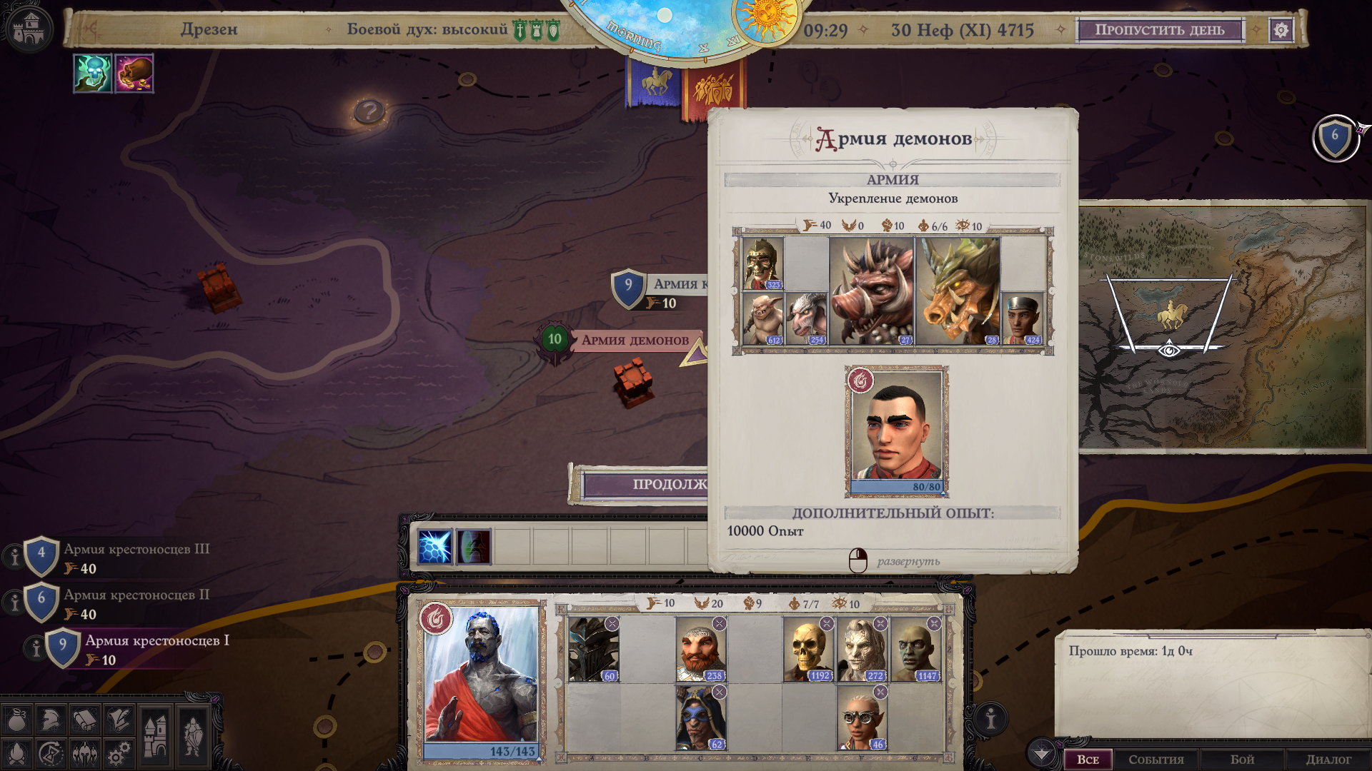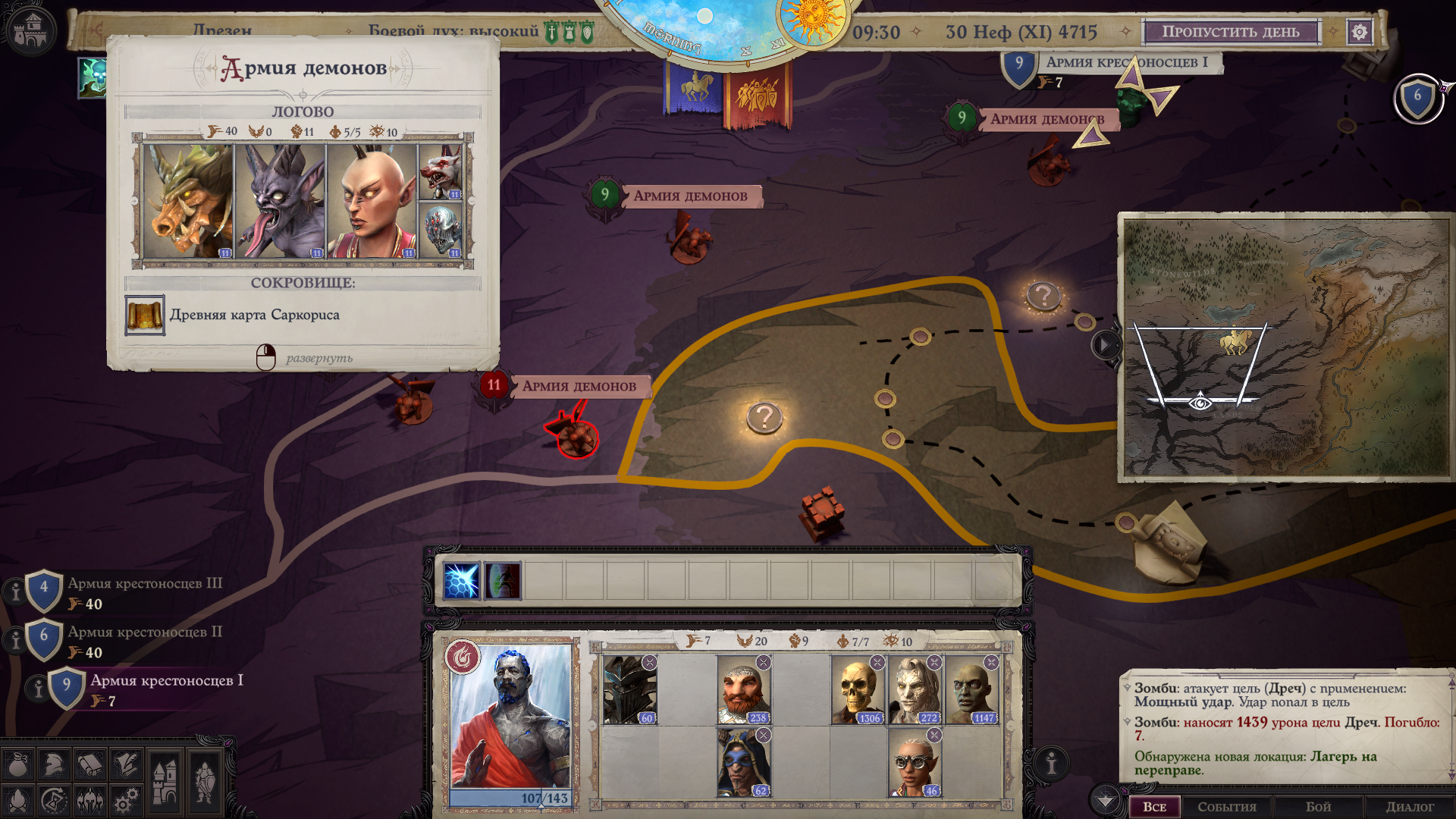После освобождения Дрезена вам откроется исследование карты в стратегическом режиме. Когда вы наберете необходимый уровень, чтобы расправляться с фортами десятого уровня, сможете открыть локацию с войском, состоящим из крупных демонов (карта прилагается). Выглядят пугающе, но на деле расправиться с ними проще чем добраться. С войска выпадает карта. По завершению манипуляций с предметом в меню Похода, вы сможете изготовить либо двуручный бердыш, либо одноручный клевец, и соответствующим образом зачаровать оружие. Наслаждайтесь резко возросшей боевой мощью вашего персонажа!
