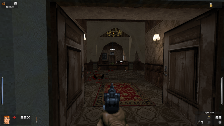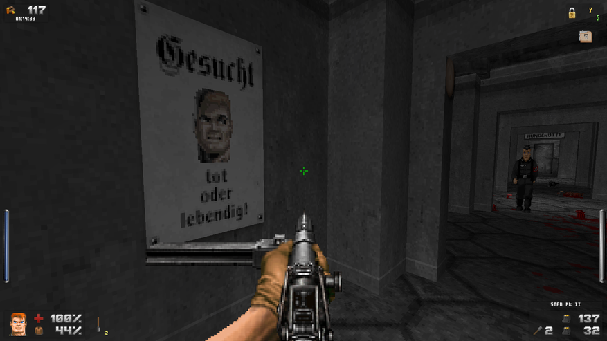 С FPS — шутерами от первого лица — я познакомился уже после выхода Wolfenstein 3D. Даже в Doom от все тех же id Software я познакомился уже после Duke Nukem 3D от 3D Realms. Естественно, что пустые коридорные лабиринты, наполненные демонами или нацистами, не особо впечатляли после открытых городских локаций из Дюка. Да и сюжет у последнего был куда как более проработан. Если под сюжетом подразумевать, что космолет Дюка сбили над Лос-Анджелесом злобные инопланетяне, и Дюк пошел драть всем известные места и жевать жвачку. Так что особого впечатления оригинальный Wolfenstein 3D на меня не произвел. Стрелялка, как стрелялка. Банальный FPS.