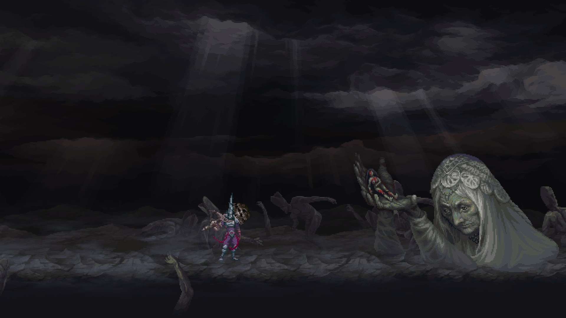 Перед нами всё та же добротная метроидвания с платформингом и соулсовскими боями. Визуально отличия с первой частью есть, но мало кто посчитает их существенными и немногие в принципе обратят на них внимание. Первое, что бросилось в глаза лично мне — изменившаяся рисовка и подача катсцен. Blasphemous 2019 года рукой отечественного художника Андрея Гогия обращена в храмовое полотно мрачного фэнтези. Атмосфера обречённости в пикселях настолько густая, что её можно было резать мечом героя, известного также как по Озерам Безмолвным Слоняющийся.