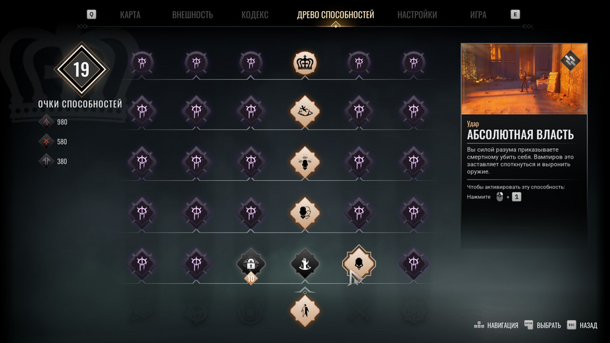 То есть вместо привычной прокачки за счёт очков опыта теперь собирайте очки крови. В настольной игре, если не знали, «Мир Тьмы» — это настольная игра, уже давно существует резонанс крови. Придумали эту механику для получения персонажем бонусов. При соблюдении диеты на усмотрение рассказчика, он же мастер, персонаж игрока мог получить соответствующую дисциплину.