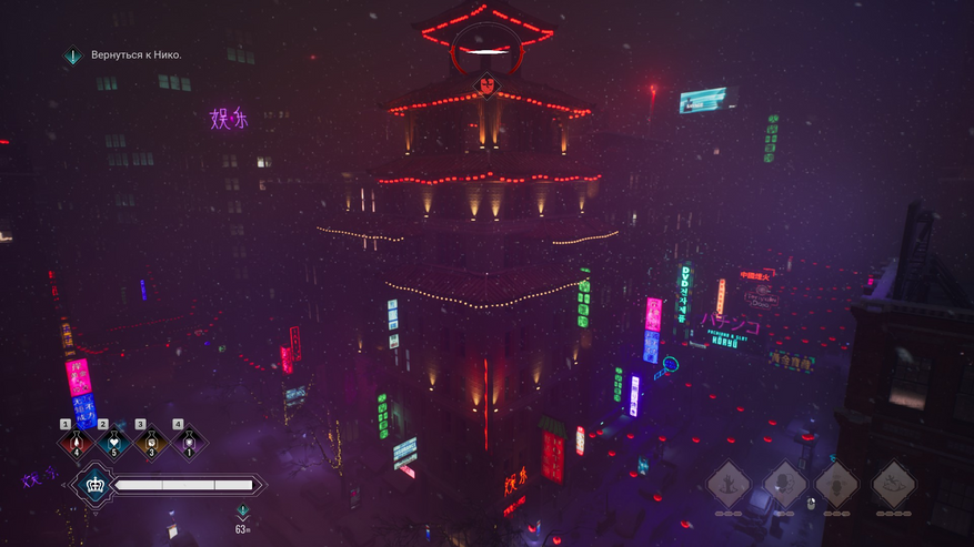 Когда стоишь и ничего не делаешь, графика завораживает. Но это только поначалу. Серьёзно, на памяти не так много игр в зимнем оформлении, но есть примеры для сравнения. Когда вспоминаешь тех же Batman: Arkham Origins и Spider-Man: Miles Morales, встаёт вопрос… Что в игре такого, из-за чего наблюдаются регулярные лаги?! И это ещё не говоря об одинаковых NPC, среди которых каждый второй представитель работы из сферы для взрослых.