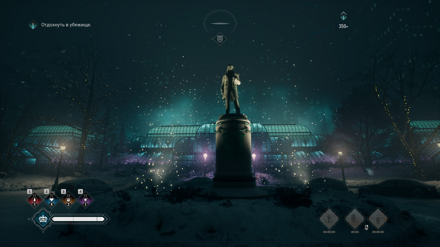 Зато геймплей за старейшину порадовал, хотелось бы сказать, но нет. Единственное, что привлекло внимание, это то, что игроку дали карабкаться на здания и парить между ними. Ну, а теперь, будучи 400-летним вампиром, чем займётся игрок? Правильно, будет доставлять посылки и охотиться на местных представителей низшей ступени вампирского сообщества — слабокровных!