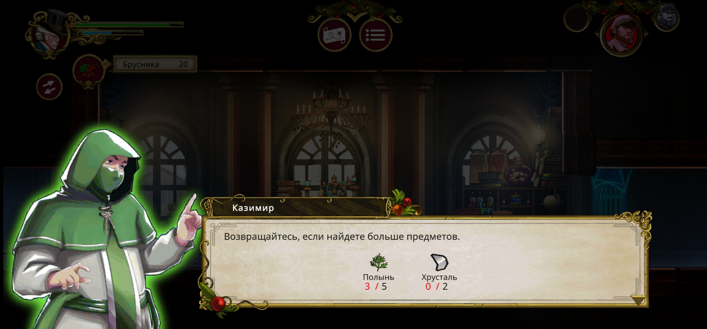 В Ebenezer and the Invisible World довольно странный баланс здоровья. В игре слишком мало аптечек. После сохранения в точке сохранения линия жизни полностью восстанавливается, а аптечки — нет. Что накопил, с тем и бегаешь. Даже прокачанной полоски здоровья для полноценного исследования территории и пробежки от одной точки сохранения к другой не хватает. На первой локации я решил эту проблему гриндом слабых аптечек (брусники), наворачивая круги по центру Лондона (благо копить их в сумке можно десятками). Однако за пределами центра аптечки встречаются разово и полянки для гринда испаряются. Тогда покупка реликвий, дающих шанс выбивать аптечки из врагов и пассивный скил постепенного пополнения здоровья, стали для меня единственным средством выживания.