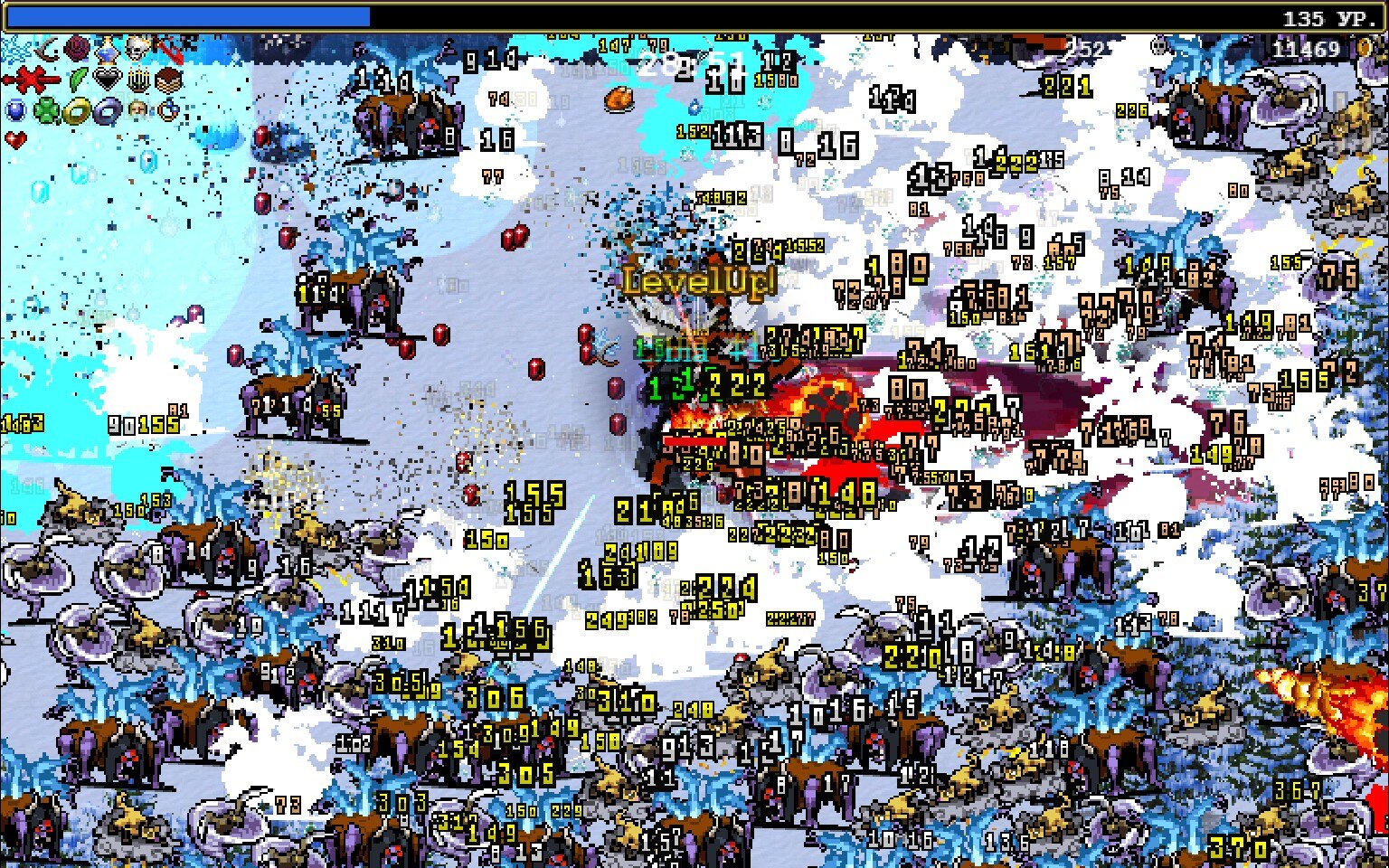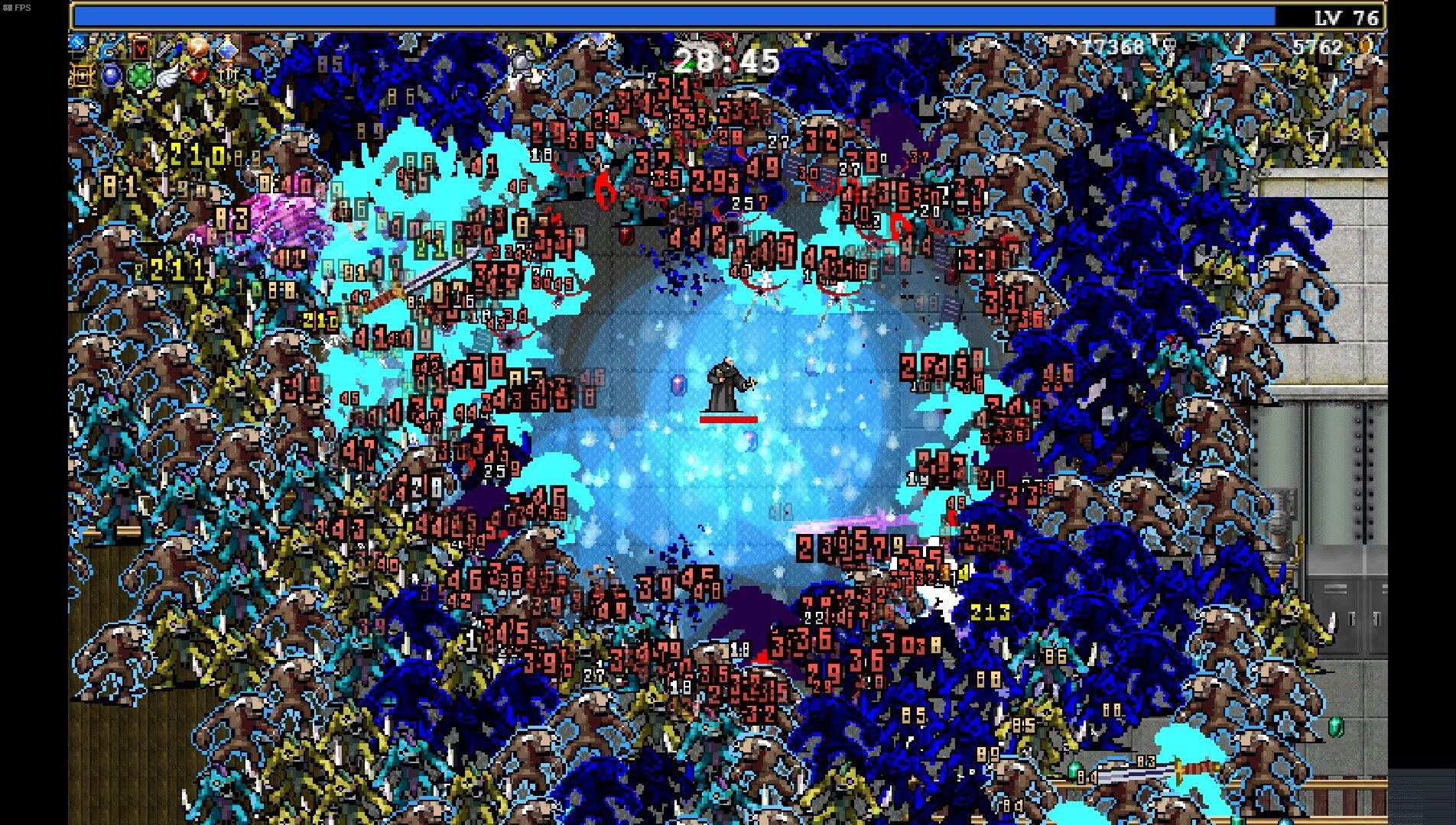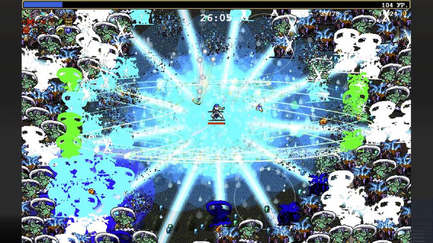 Как оказалось, стрелять сразу ворохом различных снарядов, с различными свойствами и внешностью оказалась безумно приятно. Чувствуешь сильнейшее эстетическое удовлетворение, раз за разом запуская в бесконечную орду врагов потоки разнообразного мусора, и наблюдая феерию из вспышек, циферок, выпадающих кристаллов опыта и тысячи уничтоженных монстров. Подобный опыт до этого мог подарить редкий удачный забег в Binding of Isaac, либо уже сформированный билд некроманта-призывателя из Diablo 2 на 30м часу игры, но вот то, что бы вся игра от начала и до конца была именно про это - и стало основополагающим нововведением Vampire Survivors. Помимо пальбы кучей разных пулек и эффектов и крутейшей музыки VS радует многоуровневой прокачкой, огромным количеством персонажей, которых необходимо открыть, разнообразием собственно оружия, лутбоксами в архаичном понимании этого слова и приятным дизайном звука. Все это закрепило успешную базовую формулу, и по-сути исправило проблемы Magic Survival, не позволившие ей стать мега-хитом.