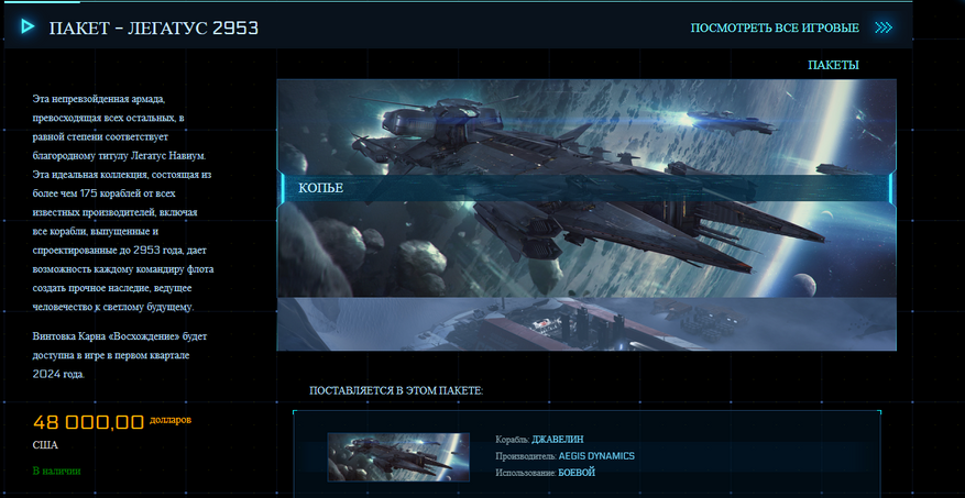 Как заметил Tweaktown, пакет кораблей Legatus 2023 года теперь доступен для покупки в Star Citizen. С 2018 года RSI выпускает эти большие пакеты, содержащие доступ ко всем кораблям и улучшениям. И все они были дорогими. В 2021 году пакет стоил 40 000 долларов США. В 2022 году цена выросла до 42 000 долларов США. Но теперь пакет 2023 года подскочил в цене еще больше и стоит ошеломительные 48 000 долларов США.