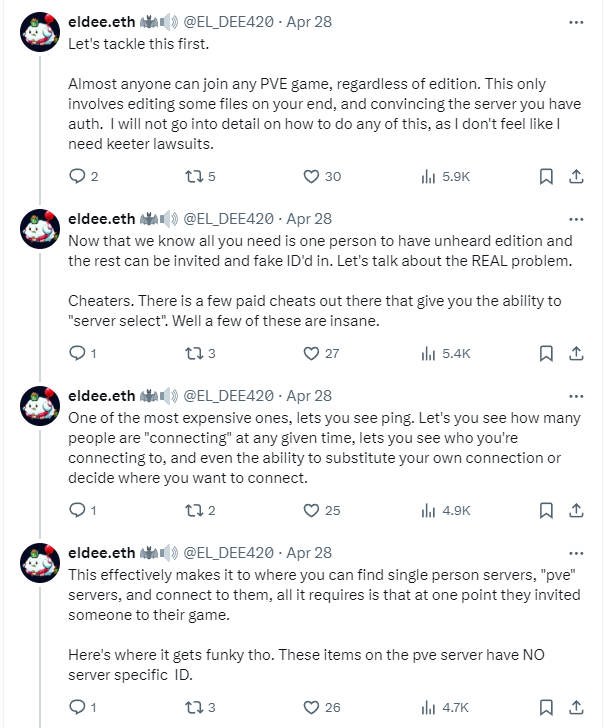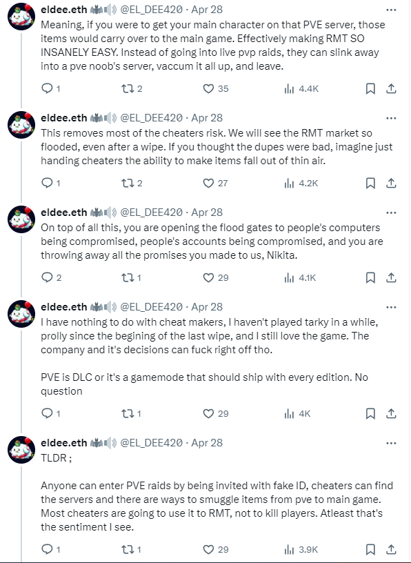 С выходом нового издания для Escape from Tarkov, разработчики представили им доступ для PvE-режима, в котором игроки могут играть без страха перед другими игроками как в одиночку, так и в кооперативе с друзьями. Но вместе с релизом этого издания в этом режиме появилась серьёзнейшие уязвимости, которые можно использовать, чтобы вторгаться в рейды других игроков, мешать их похождениям и воровать у них вещи.