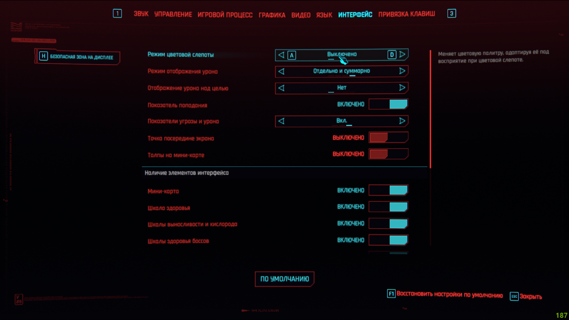Cyberpunk 2077 и цветовая слепота. Чёртовы прицелы