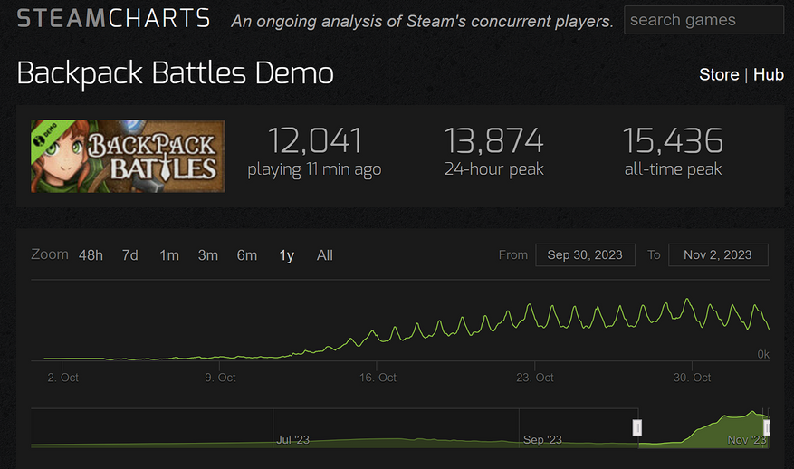 Несмотря на то, что Backpack Battles далека от релиза, механика с менеджментом инвентаря уже пришлась многим геймерам по вкусу. Пиковый онлайн Backpack Battles в Steam составил более 15 тысяч игроков. На платформе Twitch новый автобаттлер тоже неплохо выделился, собрав более 5 тысяч зрителей онлайн на момент написания статьи. В целом это очень хорошие показатели для демки от столь небольшой и ранее неизвестной студии.