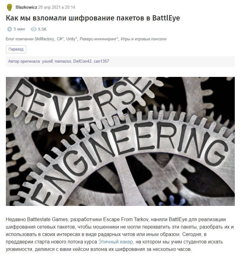 А теперь отойдём от шуток к более серьёзным аргументам. Помимо кодеров, на скамью обвиняемых можно садить службу безопасности студии (которой, возможно, вовсе нет). Дело в том, что игры Battlestate Games известны своей дырявостью и открытостью. Именно благодаря тому, что у студии нет адекватной системы защиты, хакеры регулярно получают самые свежие данные по грядущим апдейтам и делают обновления для своих приватных читов. Помимо самой игры, дырявым является и античит BattleEye, который утратил свою репутацию ещё со времён ARMA II и мода DayZ. Его тоже много раз ломали и через него вытаскивали исходники игры. Я даже на Хабре нашёл историю того, как её в очередной раз взламывали!