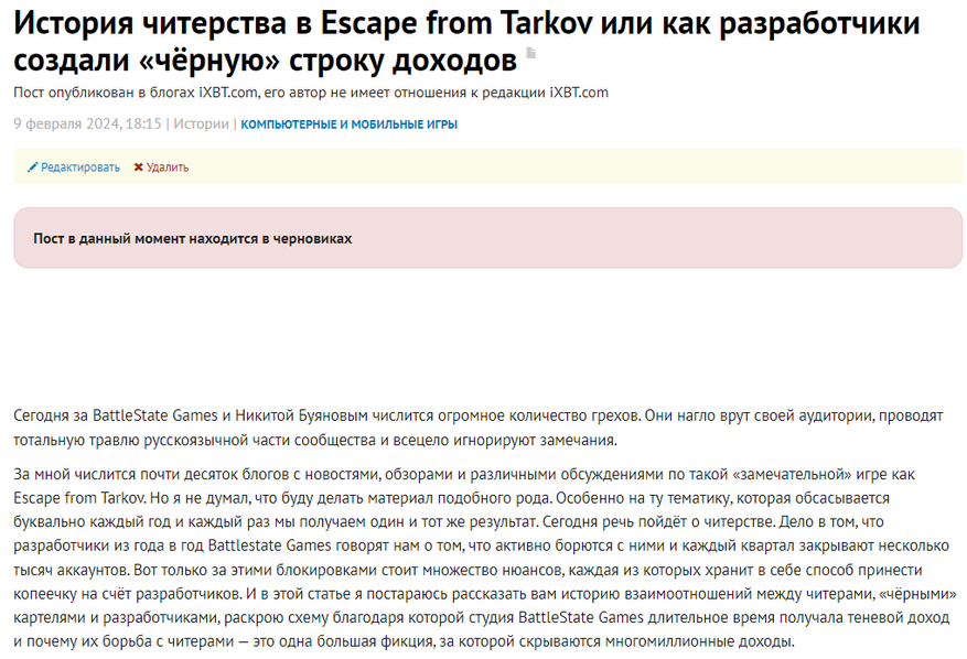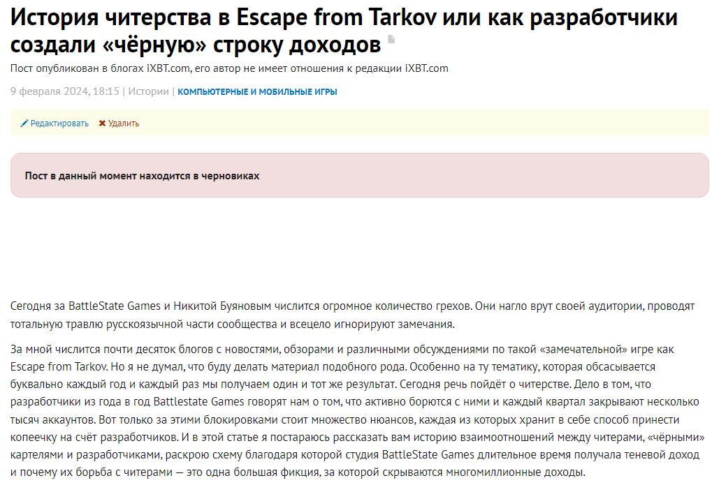 Как я упоминал в самом начале блога, данная ситуация стала крайне неоднозначной из-за тех событий, которые спровоцировали сами Battlestate Games. Не будь они такими жадными и обнаглевшими, все бы впряглись за этого «маленького британского разработчика». Ну и хоть у них и без этого множество прегрешений, часть из которых указаны выше, лично я бы встал на их сторону. Но так как они показали своё истинное бесчеловечное лицо, то и впрягаться за этих нелюдей нет смысла.
