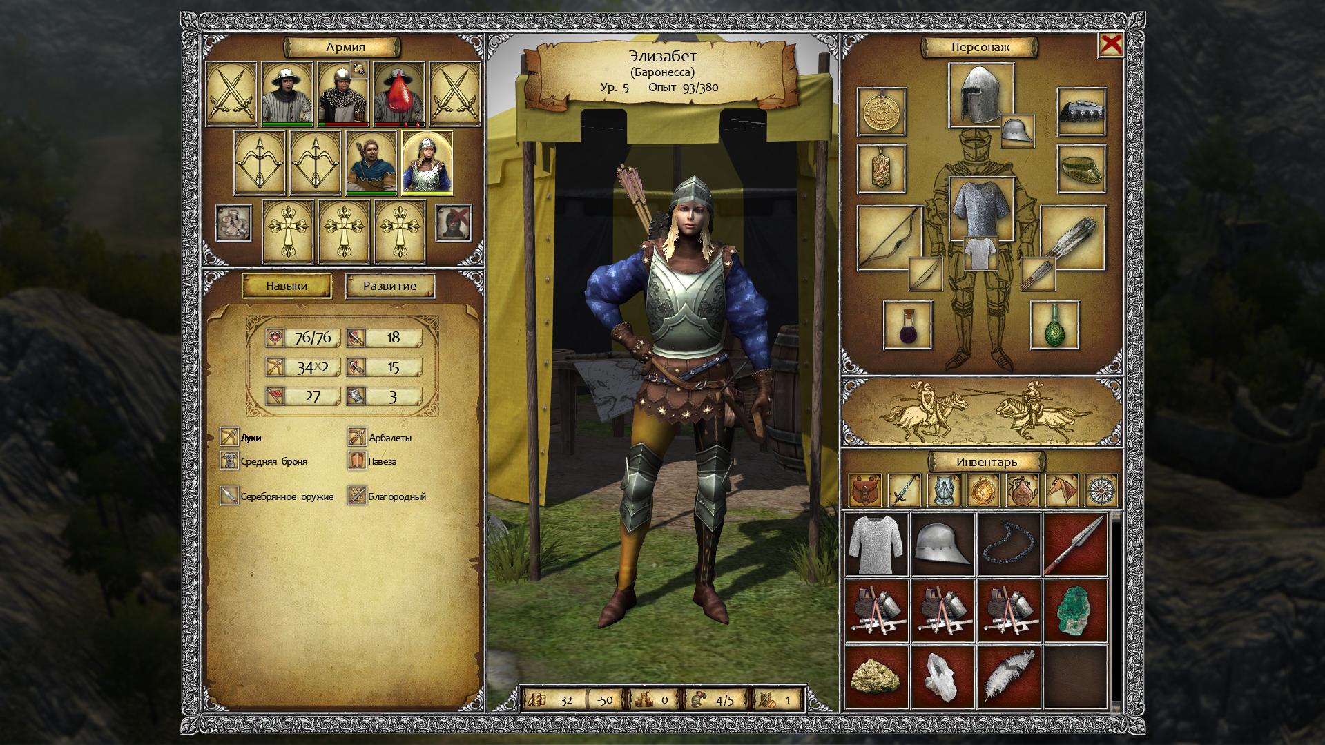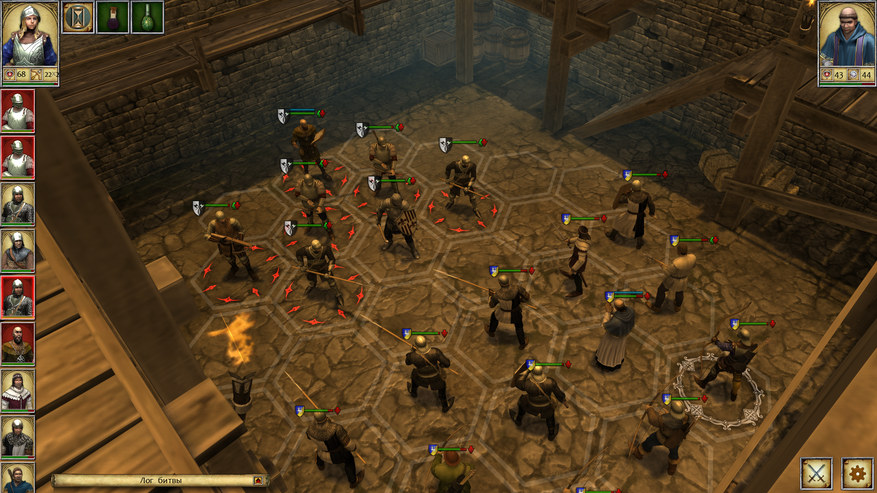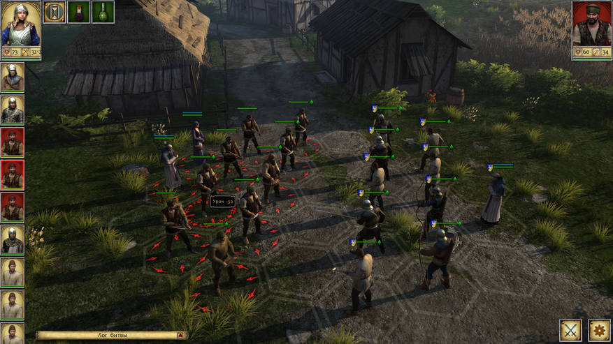 Пока вы путешествуете по вполне аутентичному средневековому миру, за исключением нескольких сверхъестественных духов и оборотней, вы собираете вокруг себя прославленную группу вооруженных приспешников, которые сражаются с противостоящими войсками мечами, копьями, пиками, луками и арбалетами в типичном чередовании. Боевая система немного отличается от того, что вы могли ожидать, но просто примите все как есть, в игре предоставлено очень внятное и понятное обучение. Бои происходят на арене состоящей из шестигранников. Ваши солдаты ходят в порядке согласно уровню их инициативы, а также их ход не заканчивается обычным перемещением, так что они обязательно должны нанести урон, произвести действие или же изначально пропустить ход. Кроме того их можно улучшить с точки зрения атакующих или защитных свойств с помощью дополнительно купленного или захваченного снаряжения. Существует также своего рода базовая магия, которая проявляется, среди прочего, в исцеляющих заклинаниях или проклятиях. Однако стоит постоянно следить за ресурсами, так что сразу кидаться покупать топовое снаряжение не выйдет. Также нужно следить за здоровьем членов отряда, не говоря уже о главном герое, так как, получив несколько ранений, они могут умереть окончательно. Найм их происходит в тавернах, городах, замках и деревнях, а лечение либо с помощью предметов или магии, либо в церквях.