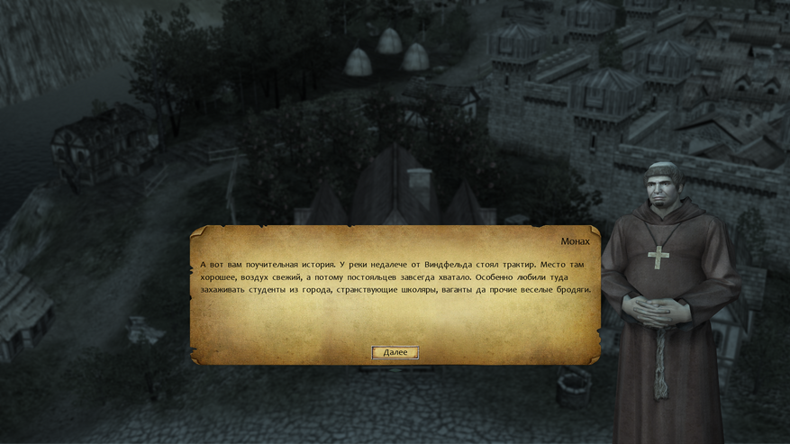 Тем не менее я просто не могу идти дальше, не упомянув превосходный симфонический саундтрек этой игры. Великолепные оркестровые треки создают очарование, которое действительно погружает вас в средневековую атмосферу истории. Звуковые эффекты также весьма неплохи. Например, когда вы в таверне слушаете пустые сплетни или возмутительную историю какого-то торговца, звуки болтовни людей и звона посуды на заднем плане дополняют атмосферу.