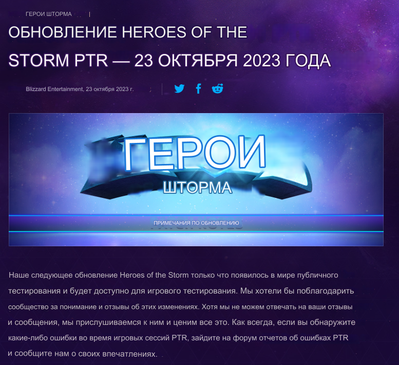Выпущенная в 2015 году Heroes of the Storm имела не малый успех у игроков. Игру активно поддерживали разработчики, добавляли новых героев и проводили разные ивенты. В 2020 году для игры вышел последний новый герой, а после выпускались лишь небольшие патчи. С июля 2022 года по сентябрь 2023 игра вообще не получала никаких обновлений. Про неё практически забыли. Но в сентябре 2023 года для игры вдруг вышел небольшой патч с исправлением ошибок. А вчера, 23 октября, для Heroes of the Storm вышел ещё один, более масштабный патч с изменением баланса, исправлением ошибок, правками в интерфейсе. А так же сообщением разработчиков, которые поблагодарили сообщество за отзывы об игре.