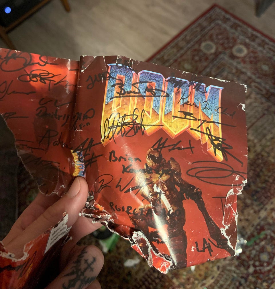 Ещё одно доброе дело от сотрудников Bethesda. В начале года, на реддит появилась история игрока freddytylerpaul. Реддитор рассказал, что его собака уничтожила большинство компьютерных дисков, среди которых была коробка с диском DOOM и росписями разработчиков. Пост за короткое время стал очень популярным и на него обратили внимание сотрудники id Software.