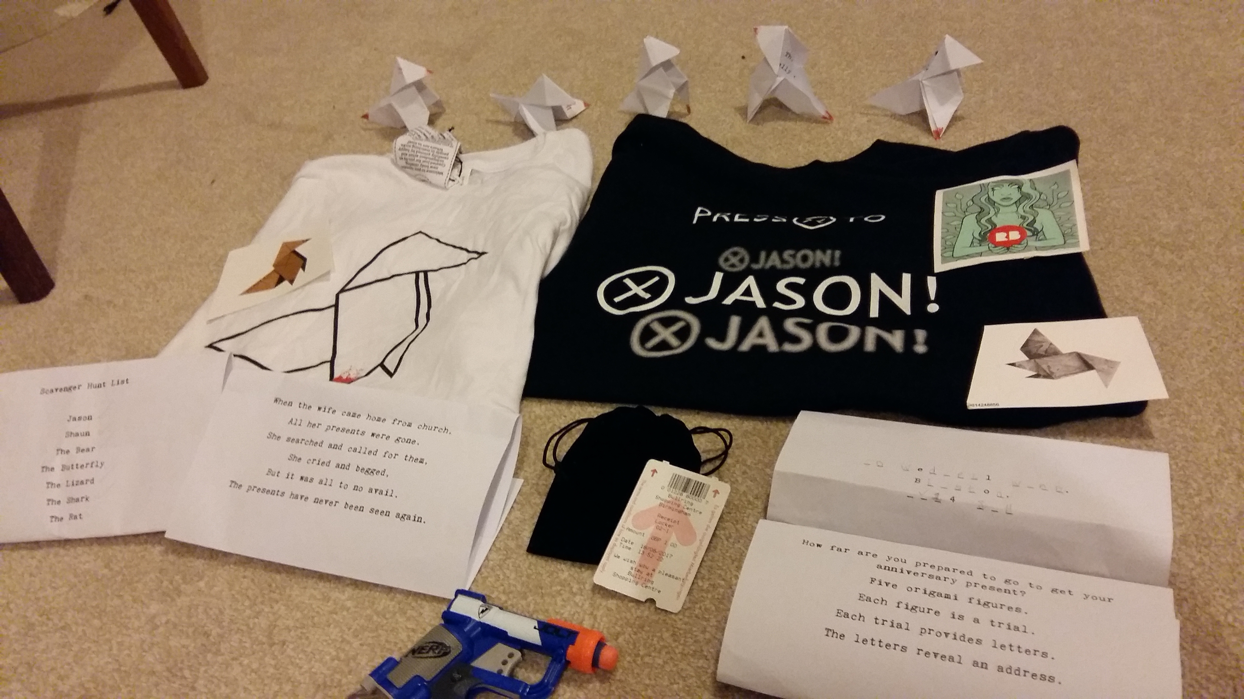 После собирания оригами, выстраивания «любовной башни» из мармелада, хождения по барам и поиска видеофильмов, девушка обнаружила футболки стилизованные под Heavy Rain и видео поздравление от Дэвид Кейджа.