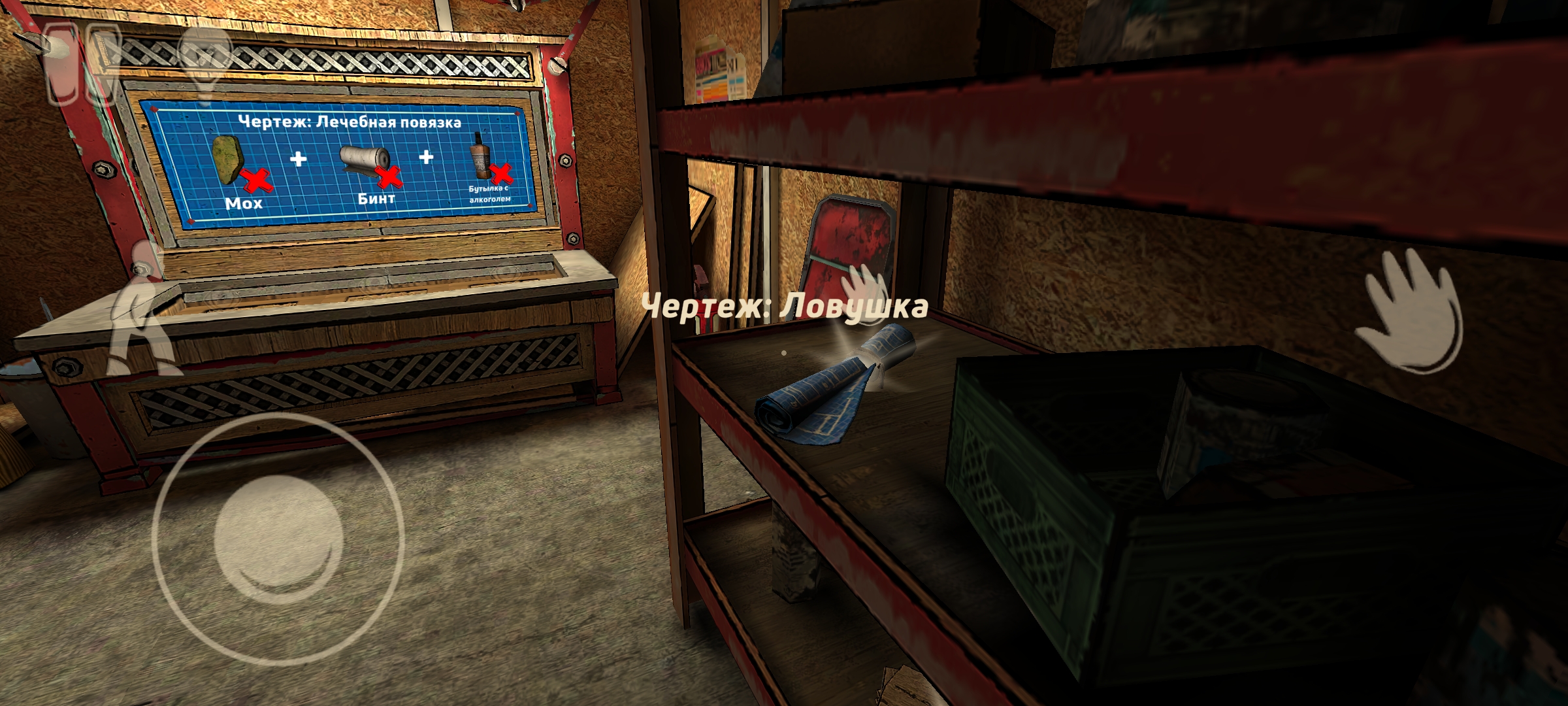 Крафт в игре элементарный. Находим чертежи, размещаем их на верстаке. После этого для каждого чертежа открываются три ячейки под предметы с чёткими разборчивыми картинками, изображающими данные предметы. Всё предельно просто, визуально понятно и удобно. Верстак, как уже говорилось выше, находится на первой локации. Всего в игре три бесплатных чертежа, два из которых сюжетно-обязательные. Из трёх бесплатных два нам выдают с первых шагов. Ресурсы к одному из них лежат тут же у верстака, а их пары раскинуты по локациям. Вся система крафта без покупки платных чертежей ощущается, как костыль для растягивания геймплея, что печалит. За реальные деньги мы можем приобрести чертежи петард и сонного спрея, которые ощутимо повышают шанс выжить в борьбе с преследователем. А также чертежи магнитофона и венка для потенциальной девушки главного героя, что на толику расширяет достаточно куцый сюжет игры.