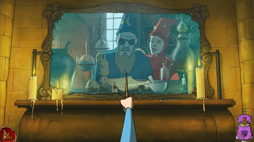 Еще в игре есть простенькие пазлы. Вроде запоминания порядка животных в зеркале, после чего изображения животных надо нажать на щите. Или собирание доспеха импа, чтобы пройти в нем незаметно мимо стражи. Хуже дела обстоят с мини-играми. Особенно в той части, когда нужно починить волшебную сумочку (инвентарь). Приходится водить мышкой, чтобы пришить к ней заплатки. И процесс этот очень неудобный и раздражающий.