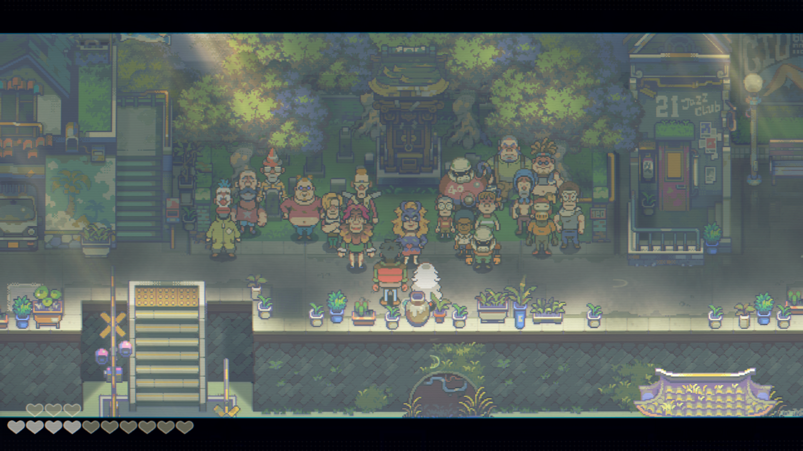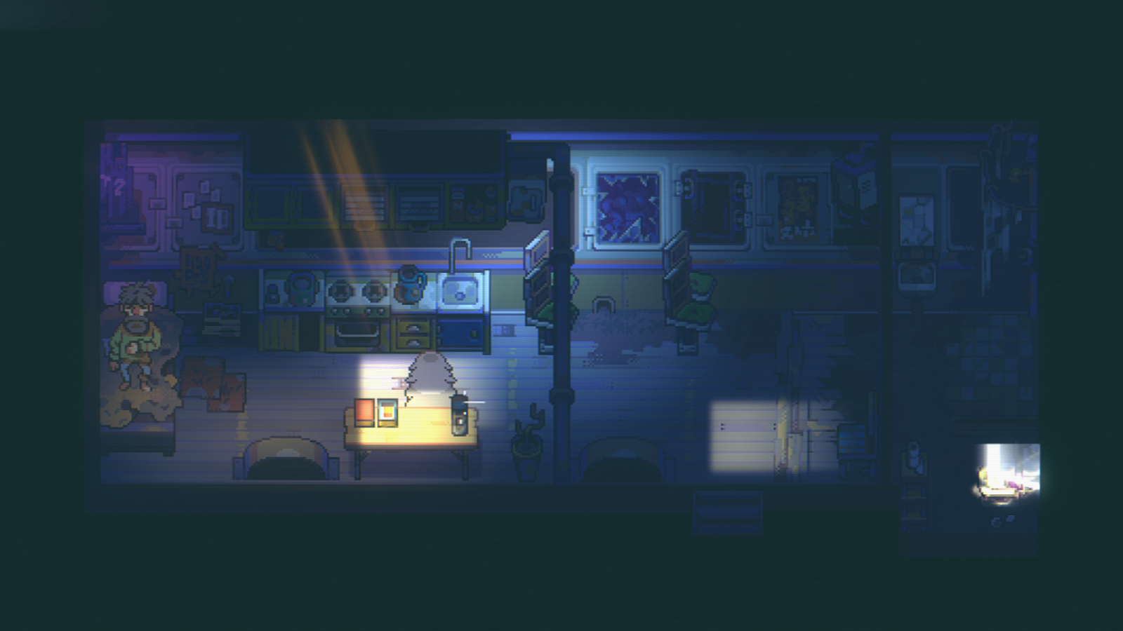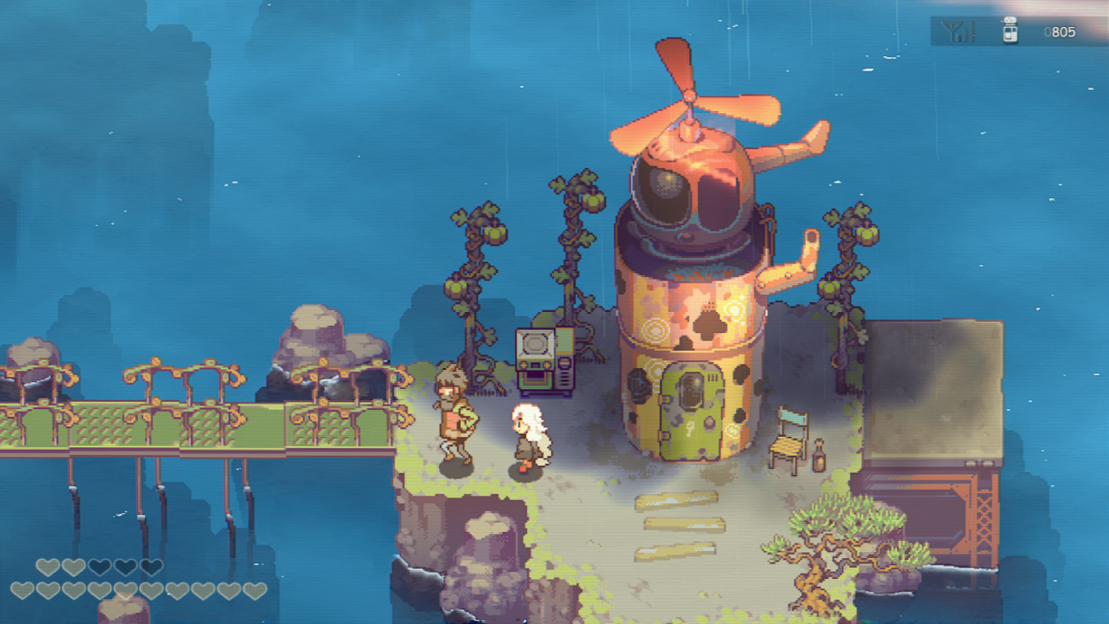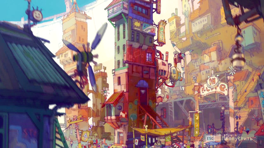 Так как сюжет писали люди из Азии, то история развивается по экспоненте. И простая камерная история двух простых людей, живущих своей обычной жизнью, переходит в глобальную историю про борьбу за жизнь последних представителей рода людского. В лучших традициях азиатской анимации. Графическое оформление игры сделано в том же «ретро-стиле», пиксельная графика и анимационные ролики в стиле мультипликации времен 1970-80. Карикатурные персонажи с простым оформлением и гипертрофированные фоны, как будто бы сошедшие с рисунков талантливого ребенка. Ибо где еще можно будет увидеть гигантского кита, лежащего на крыше станции. Или огромный поезд, в котором расположена целая студия по производству научно-фантастических фильмов. А уж какая кульминация ждет наших героев, но не буду портить спойлерами удовольствие.