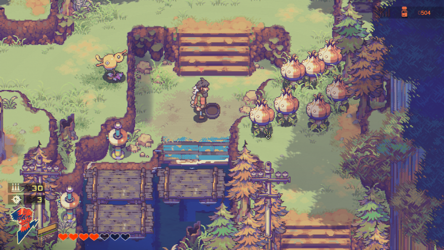 Конечно, кроме сковороды можно найти и куда более серьезное вооружение. Дробовик, помогающий отбиваться от назойливых монстров на короткой дистанции. Огнемет, который отлично позволяет зажаривать всех до хрустящей корочки, а заодно прожигать себе путь сквозь колючий кустарник. И дисковую пилу, метающую острые лезвия, способные не только нашинковать всяческих тварей, но и активировать недоступные переключатели. Но сковорода — это основное и самое важное оружие.