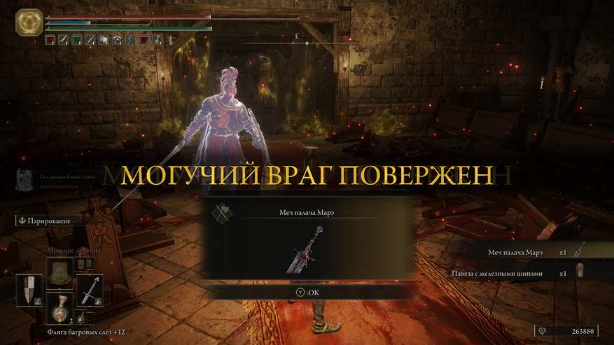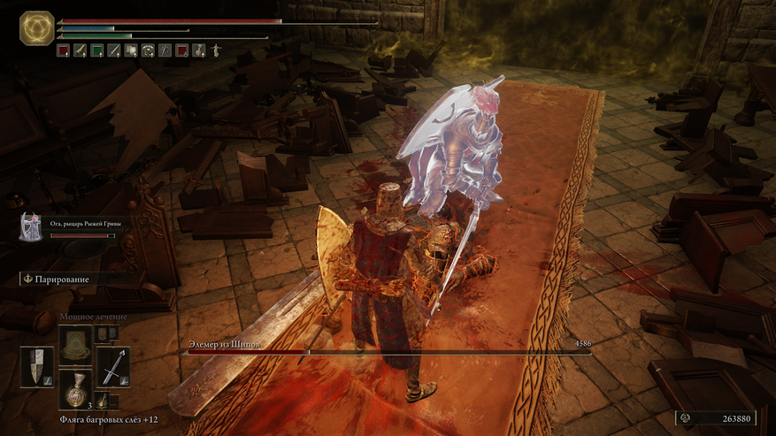 Как только найдёте большой щит, берите его не задумываясь. Такие щиты блокируют большинство урона и тратят мало выносливости на блокировку. Если вы любите копья, то этот щит вообще находка. Ставьте блок щитом и атакуйте одновременно. Если поставить на такой щит пепел войны заслон, то он 100% будет блокировать урон и не тратить выносливость на протяжении нескольких секунд. Это очень полезно против боссов. В Elden ring добавили новую атаку. Она делается после блокировки атаки врагом. Можно блокировать любым оружием, но тогда по вам проходит урон. Лучше делать это щитом, а потом контратаковать, как показано в видео ниже. Эта атака из большинства рядовых противников выбивает баланс, а из боссов за 3-5 таких атак. В связке с большим щитом и пеплом войны "Заслон" это позволит эффективно убивать почти любого врага. https://vk.com/video550415746_456239090
