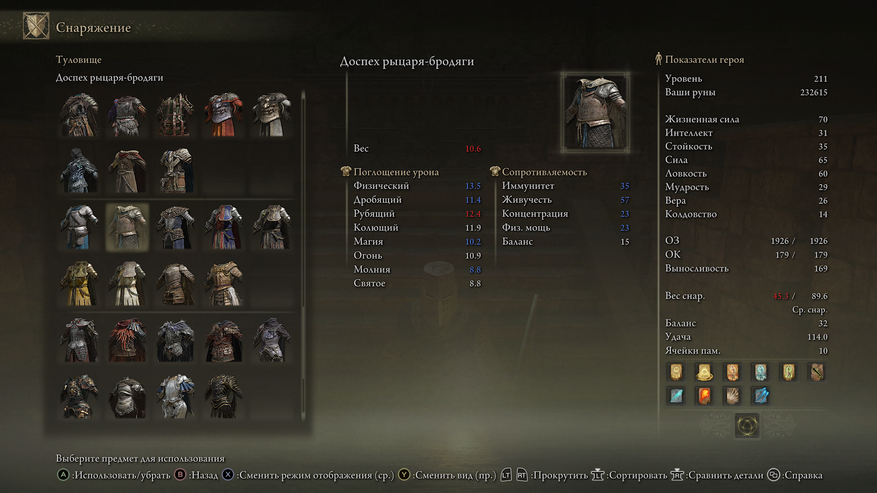 Брони в игре хватает. Я использовал сначала тяжелую, но потом остановился на лёгкой кольчуге. Средняя и тяжелая броня блокируют урон, но вот только не на всех противниках. На некоторых боссах можно заметить, что они бьют не конкретной цифрой урона, а отнимают процент вашего здоровья, например, самый суровый босс игры - Маления. Я надел кольчугу, которая представлена на многих фото, чтобы походить на рыцаря XIII века и использовал только её. Тут всё индивидуально. Если у вас будет огромный щит, то броню можно и не брать.