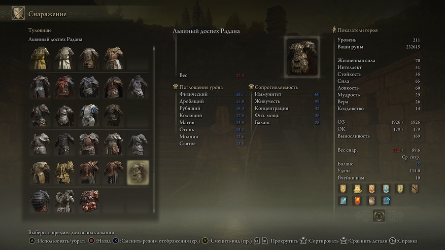 Банальный, но важный совет.: прокачивайтесь. Характеристик много. На фото мои характеристики, но я уже 2 раз прохожу игру. Для воина важны сила, ловкость, жизненная сила и стойкость. Чтобы использовать прахи нужен интеллект. Если чувствуете, что мало наносите урона боссу, то идите бить рядовых противником. Бейте пока не прокачаетесь до нужного результата. Не стесняйтесь перекачаться так, что будете наносить боссу слишком большой урон. Да от этого теряется ощущение того, что ты победил сложного противника, но новичкам это необходимо. Позже сможете в трусах и без прокачки убивать любого босса. Потерпите.