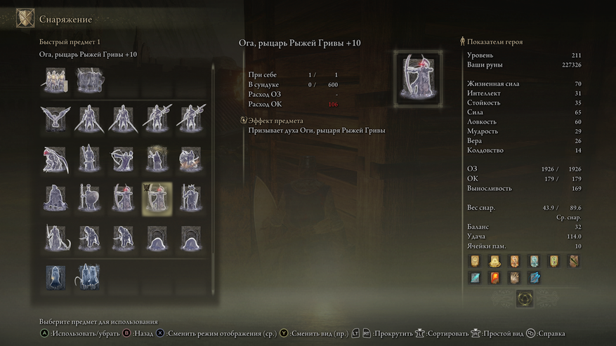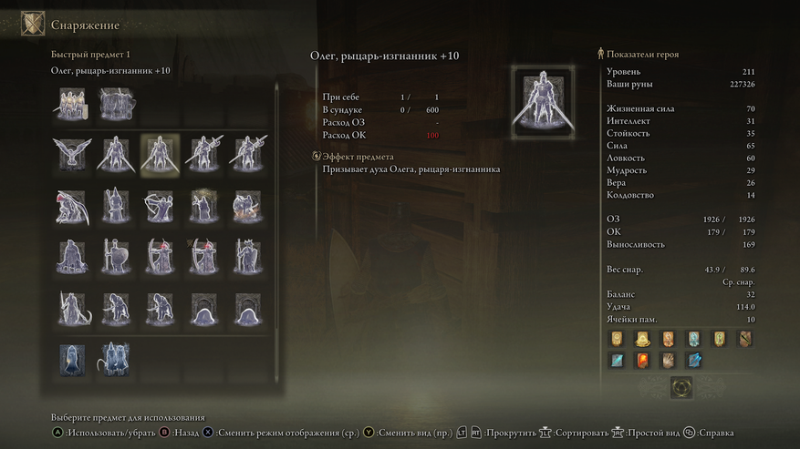 Прахи воинов заслуживают отдельного пункта. Их очень много. Вы используете прах и появляется компьютерный помощник. На начальных этапах они будут слабые, но постепенно будут попадаться всё более сильные прахи. Я использовал Олега и Огу. Олег с двумя мечами и хорошо отвлекает врага и наносит урон. Ога имеет на вооружении меч, щит и большой лук. Очень удобно. Он расстреливает босса издали, а вы бьёте босса. Самый мощный прах - это Слеза. Слеза - полный ваш клон. Это очень мощный прах. Стримеры для интереса вызывали слезу и оставляли её один на один с боссом. Слеза зачастую побеждала.