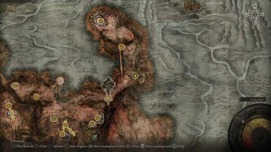 В Elden Ring дела обстоят немного приятнее. После отдыха в местах благодати, на вашей карте появляется свет, указывающий направление к следующей цели. И хотя вам всё ещё придётся искать правильный путь самому, вы будете видеть нужное направление. Это особенно важно учитывая большой открытый мир игры.