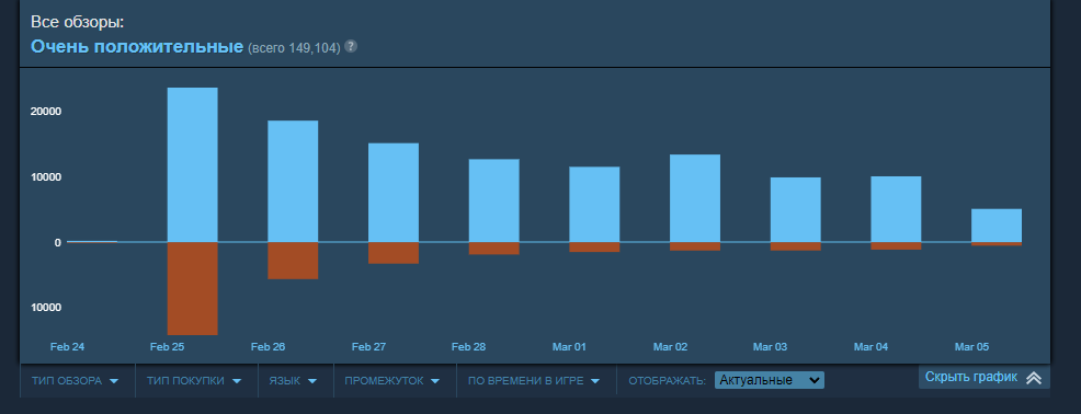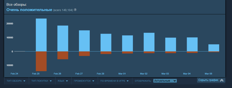 P.S. на старте в стиме пиковый онлайн превысил 760 тысяч человек, это один из самых успешных релизов в стиме за всё время.