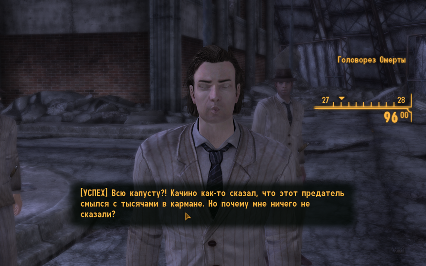 Это даже не проблема конкретно New Vegas, а вообще большинства компьютерных ролевых игр. Вся эта перегруженность и игра в магазины должны сдохнуть как явление. Желательно долгой и мучительной смертью. Ну или хотя бы иметь геймплейное обоснование, а не логическое. Всей этой ерундой может быть интересно заниматься при первом прохождении, но при повторном то эмоции уже не те, а это просто ненужная рутина. Благо, есть в игре недоработка с воровством у торговцев, если их ассортимент не скрыт от игрока. Даже «скрытность» качать не нужно. Просто уносим через Z нужную вещь подальше от глаз охраны и продавца, и уже там «воруем» её через «скрытность». У Ван Граффов отлично работает такой способ. Хотя, здесь не очень сложно разжиться крышками и другими способами.