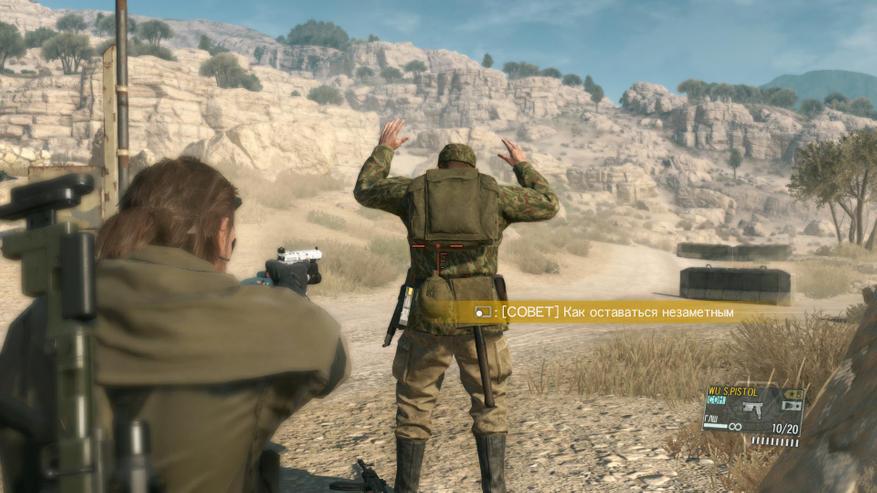 Сразу же после сюрреалистичного вступления герой отправляется в Афганистан, чтобы вытащить из плена своего друга – Казухиру Миллера. Это первая полноценная миссия, и на её примере мы подробно разберем игровой процесс.