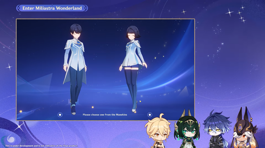 С выходом обновления игрокам станет доступен новый игровой режим, доступный прямиком из меню после выполнения квеста — там мы попадаем в особое измерение «Астральный предел», где можно будет выбрать нового протагониста и кастомизировать его, а позже использовать в основной игре. Называться он будет Miliastra Wonderland.
